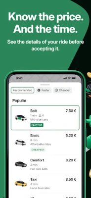 일상의 이동을 안전하고 편리하며 합리적인 비용으로 경험하고 싶다면, Bolt가 그 해답을 제시합니다. 단 몇 초 만에 목적지까지 안내해 줄 차량을 요청하고, 최고 평점을 받은 드라이버와 함께 편안한 여정을 시작하세요. 숨겨진 요금 없이 투명하게 미리 확인 가능한 요금 정책 덕분에 언제나 안심하고 서비스를 이용할 수 있습니다. 신용/체크카드, Google Pay, 현금 등 다양한 결제 방식은 여러분의 편의를 한층 더 높여줍니다.