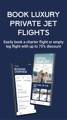 Catch-a-Jet 앱으로 럭셔리 전용기 비행을 경험하세요. 일반 전세 가격 대비 최대 75% 할인된 비용으로 이용할 수 있습니다. 단 3번의 간단한 클릭으로 1분 안에 예약과 결제를 완료하여 꿈의 여행을 바로 시작하세요.