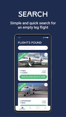 Catch-a-Jet은 기존 전세 요금 대비 최대 75%까지 절감된 비용으로 놀라운 비행 기회를 제공합니다. 고객이 편도 운항 후 비어있게 되는 '엠티 레그(Empty leg)' 항공편을 활용하여, 합리적인 가격으로 전용기 비행의 꿈을 현실로 만듭니다. 홈 화면에서 실시간으로 모든 이용 가능한 항공편을 손쉽게 탐색하거나, 원하는 출발지와 목적지, 날짜를 입력하여 맞춤형 검색을 시작할 수 있습니다. 만약 직접 일치하는 노선이 없더라도, Catch-a-Jet은 선택된 공항 반경 200km 이내의 대체 항공편과 왕복 비행 옵션까지 자동으로 찾아 당신에게 제시합니다.