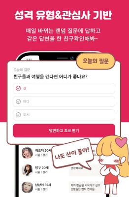 인위적이고 어색한 소개팅에 지치셨나요? 이제 부담 없이 편안하게 소통하며 진짜 남사친, 여사친을 찾아보세요. 솔직하고 자연스러운 만남으로 새로운 인연을 만들어갈 기회가 여기 있습니다.