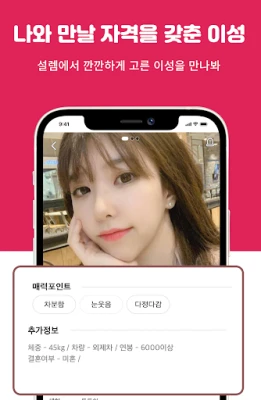 더 이상 혼자 고민하지 마세요. '설렘'과 함께라면 당신의 하루는 새로운 기대감으로 가득 차고, 평범했던 일상이 특별한 인연으로 채워질 것입니다. 지금 바로 '설렘'이 선사하는 새로운 만남의 즐거움을 만끽하고, 당신만의 소중한 인연을 만들어가세요.