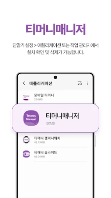티머니매니저는 독립적인 애플리케이션 형태가 아닌, 기존에 사용하시던 티머니 교통카드 앱과 유기적으로 연동되어 작동하는 백그라운드 서비스입니다. 별도의 실행 아이콘이 생성되지 않으며, 사용자께서는 인식하지 못하는 사이에 티머니 결제 및 충전 과정의 안정성을 보장합니다. 네트워크(블루투스, NFC, 인터넷 등)를 통한 데이터 전송이 필요한 순간이나 외부 기기와의 상호작용이 요구될 때, 티머니매니저는 지능적으로 개입하여 끊김 없는 연결과 정확한 처리를 지원합니다. 이는 더욱 빠르고 편리한 티머니 경험을 위한 필수적인 기반입니다.