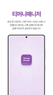 티머니매니저 앱은 티머니 서비스의 보안을 강화하고 향상된 기능을 제공합니다. 유심 및 가상카드 기반 티머니 서비스 이용 시 필수적이며, 기존 교통카드 앱과 연동하여 원활하고 안전한 사용을 지원합니다.