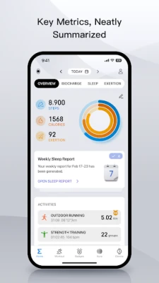 Zepp App은 단순한 기록을 넘어선 정밀한 분석을 선사합니다. 식사 사진 한 장으로 칼로리, 중량, 주요 영양소를 손쉽게 파악하여 엄격한 식단 관리가 필요한 운동선수에게 특히 유용합니다. 심박수, 수면 단계, 스트레스 수준, 혈중 산소 포화도와 같은 핵심 건강 지표는 물론, 걸음 수, 소모 칼로리, 훈련 페이스, 거리, 강도 기록 등 상세한 피트니스 진행 상황을 추적합니다. 정교한 센서로 분석된 수면 데이터는 신체의 회복 상태를 정확히 보여주어, 격렬한 훈련에 나설 준비가 되었는지 혹은 충분한 휴식이 필요한지 판단하는 데 도움을 줍니다. 또한, Amazfit 기기와 연동하여 심박 변이도(HRV), 안정시 심박수(RHR) 등 심혈관 건강의 중요한 지표들을 한눈에 확인할 수 있습니다.
